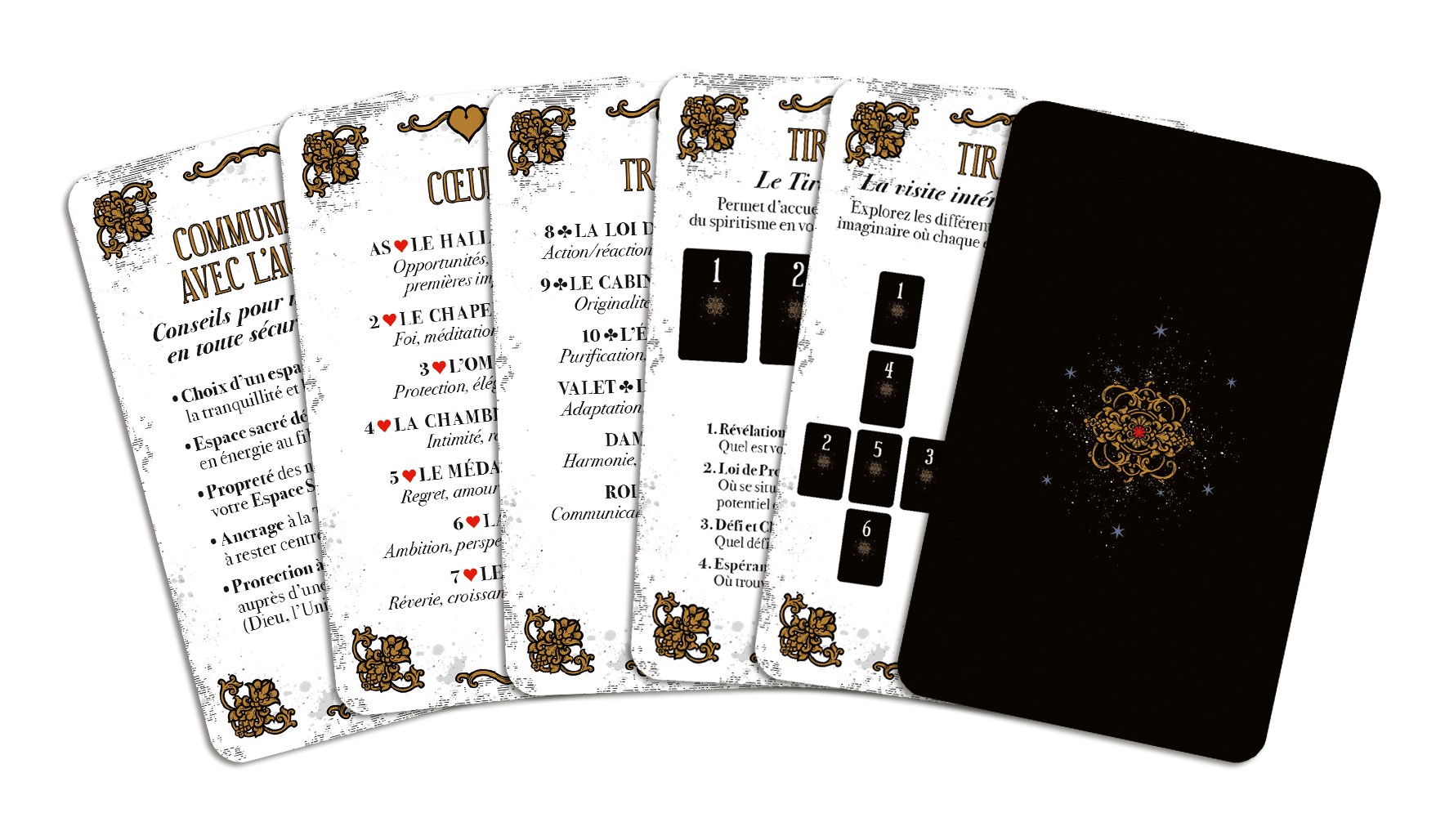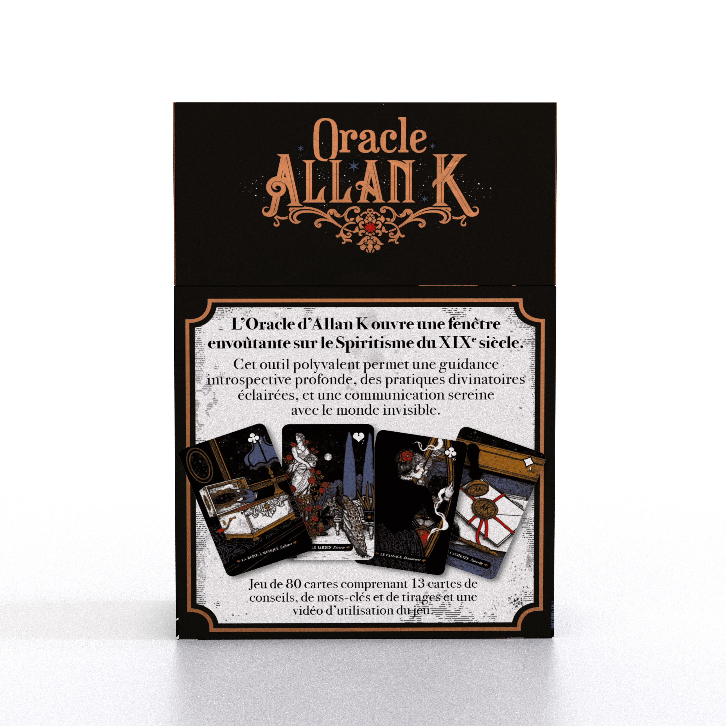 Inspiré par l’œuvre d’Allan Kardec, figure emblématique du spiritisme moderne, ce jeu vous accompagne dans vos tirages, vos méditations et vos séances de guidance.